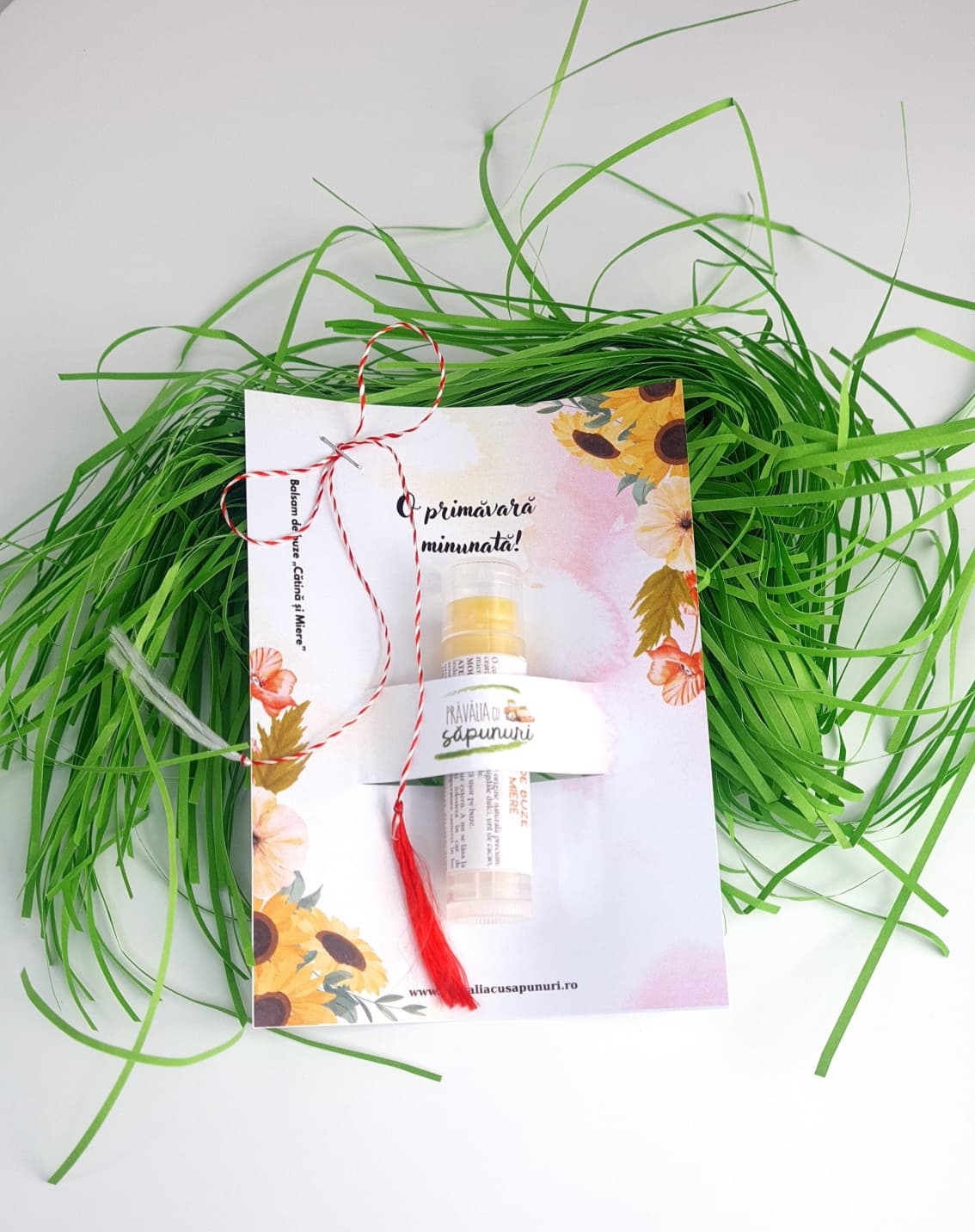 Oferă un mărțișor cu adevărat special – un cadou delicat, util și realizat din ingrediente naturale. Balsamul de buze cu Cătină și Miere hidratează intens, hrănește și protejează buzele împotriva uscării, fiind ideal în sezonul rece și la început de primăvară.